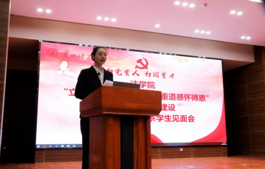 10月27日下午,法学院“立德树人引航青春 尊师重道感怀师恩”强化师德师风建设暨本科生导师联系学生见面会在彭家坪校区图书馆106报告厅举行。学校党委常委、纪委书记李香枫,党委学生工作部部长、学生处处长孙伟国、教务处副处长冯宜伟、法学院院长贾小龙、法学院副院长白小平、法学院教师,2020级全体本科生,高年级学生代表、班干部参加会议。会议由法学院党委书记张艳主持。
