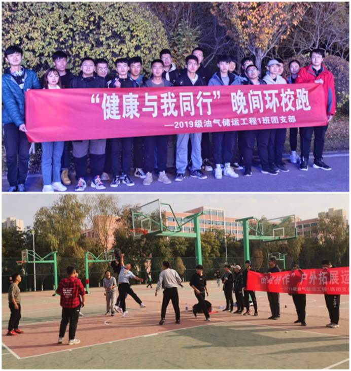 2019级油气储运1班团支部围绕“文体活动型”支部创建目标,19-20学年秋季学期开学以来,组织开展覆盖全体支部成员的“健康与我同行”环校夜跑、“团结协作”户外拓展羽毛球赛及篮球赛等活动,通过团队锻炼和分组比赛提振搏精神,增进成员感情。