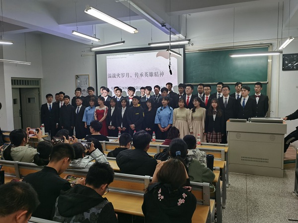 为纪念中国人民志愿军抗美援朝出国作战70周年,大力弘扬爱国主义精神。电信学院11月2日晚于彭家坪校区抒望楼405教室成功举办“重温战火岁月,传承英雄精神”——“致敬抗美援朝”主题朗诵比赛,来自2020级的11支参赛队伍参加活动,学院辅导员李扬、黄宁及三名学生代表组成评委。