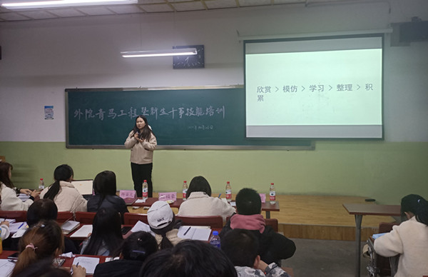 此次培训以“加强思想建设,全面提升素质”为主题,主要从学生干部基本素养及行为习惯的养成、办公室软件应用、学生干部基本技能、优秀学生干部和团体素质拓展、学生干部礼貌礼仪等方面展开。 开班仪式上,外国语学院党委副书记焦娜向全体学员介绍了本次培训的目的意义、课程内容等,希望全体学生干事珍惜学习机会,认真学习习近平新时代中国特色社会主义思想和新时代中国特色社会主义理论知识,通过培训明确新时代大学生、学生干部应该具备的能力素质,把培训期间的所学所得化为学生干部工作中的具体行动,切实发挥服务学生、模范纽带作用。