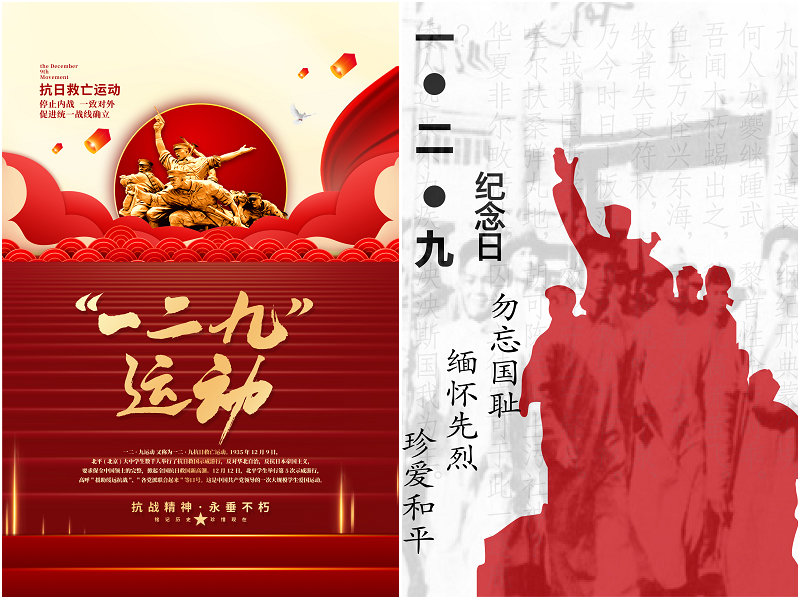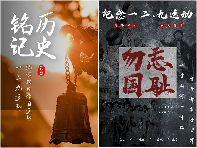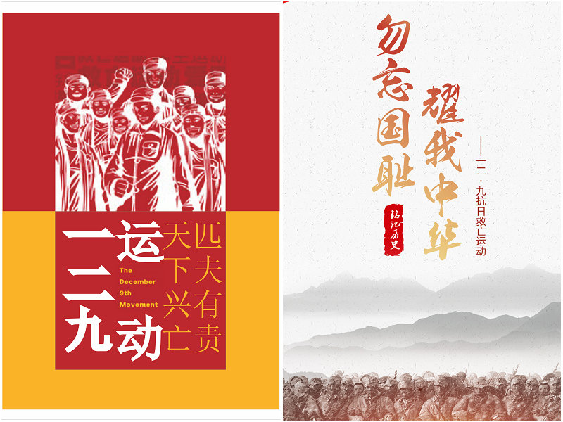 “12·9”爱国主义运动是在中国共产党组织和领导下的一次伟大的抗日救国运动,是一次伟大的学生爱国运动。通过参与纪念“12·9”电子海报设计,让学生深入了解“12·9”运动的历史,弘扬中华文化,增强学生的爱国意识,促进学生成为具有历史责任感与时代使命感的优秀青年。