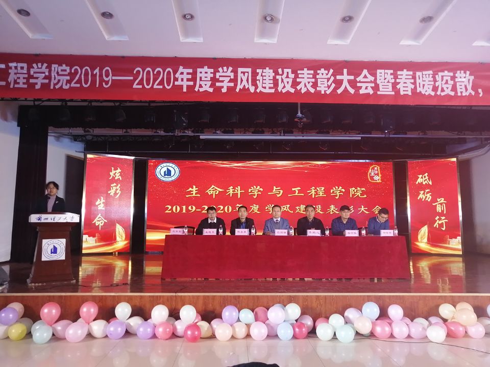 12月19日晚上,生命科学与工程学院在彭家坪校区大学生活动中心召开了2019-2020年度学风建设表彰大会暨春暖疫散。党委学生工作部副部长李鹏远,学院院长伍国强,学院党委书记陈永泰,副书记武军莉,副院长杨明俊、任海伟,学院优秀校友甘肃省2020年度劳动模范王旭亮,生命学院全体学生干部,2020级全体新生参加了此次活动。表彰大会由武军莉主持。