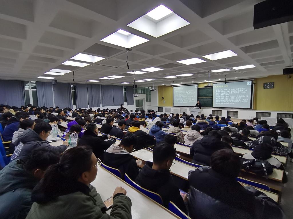 唐老师首先为学生们解读了今年征兵的条件和相关政策,尤其是学生最为关心的大学生应征入伍可享有的优先考学提拔、补偿学费和代偿国家助学贷款、退役后享受就学就业优惠等优抚政策。随后2名退役复学的学生代表分享了他们在服兵役时的基本情况,军队的生活使他们收获了远大的理想信念,坚强的意识、良好的行为习惯和强健的身体素质。在部队培养的顽强作风和坚韧不拔的毅力,将会使他们终身受益。并号召同学们积极应征入伍,到部队去锻炼自己,成就自己。