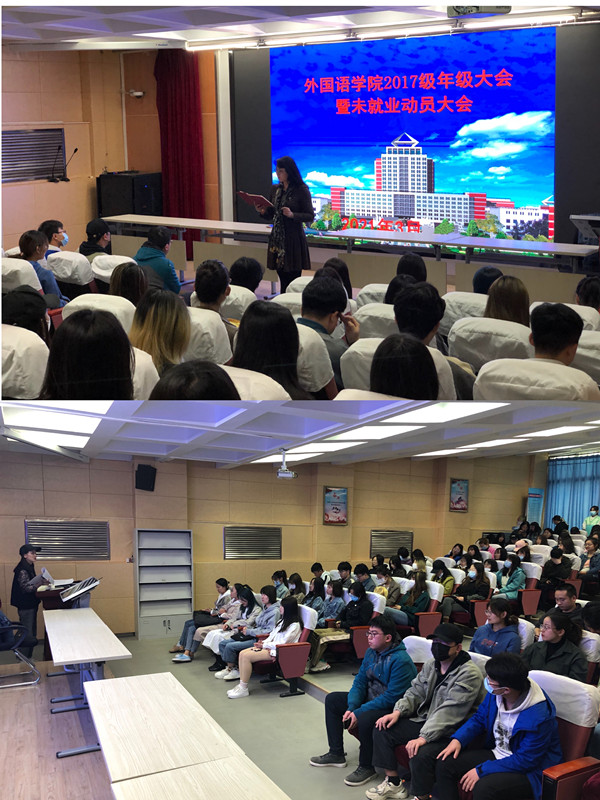 3月25日下午,外国语学院未就业学生动员会及2021届毕业生年级大会在兰工坪校区尚学楼204教室举行。学院党委副书记焦娜、全体辅导员、2021届全体毕业生参加了会议。