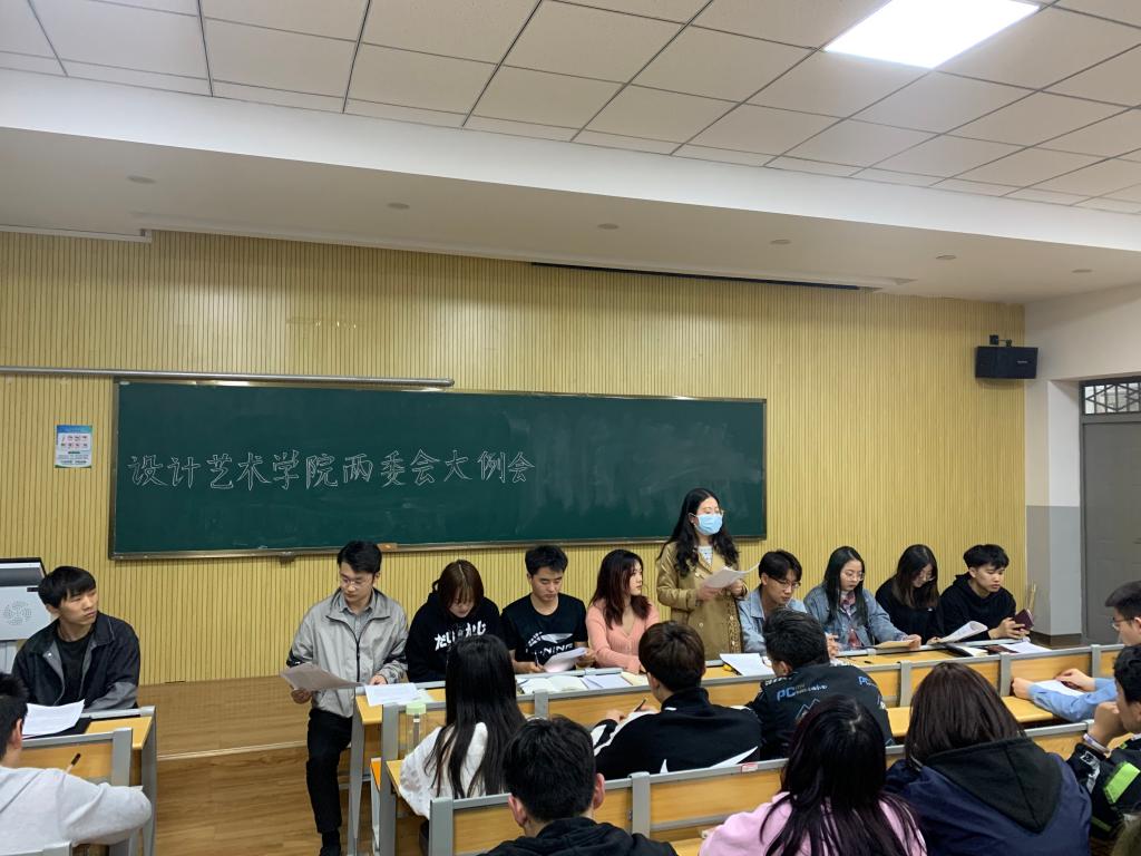 4月12日,设计艺术学院在兰工坪校区琢玉楼109召开两委会大例会,辅导员宋美瑾及学生工作人员参加了此次例会。