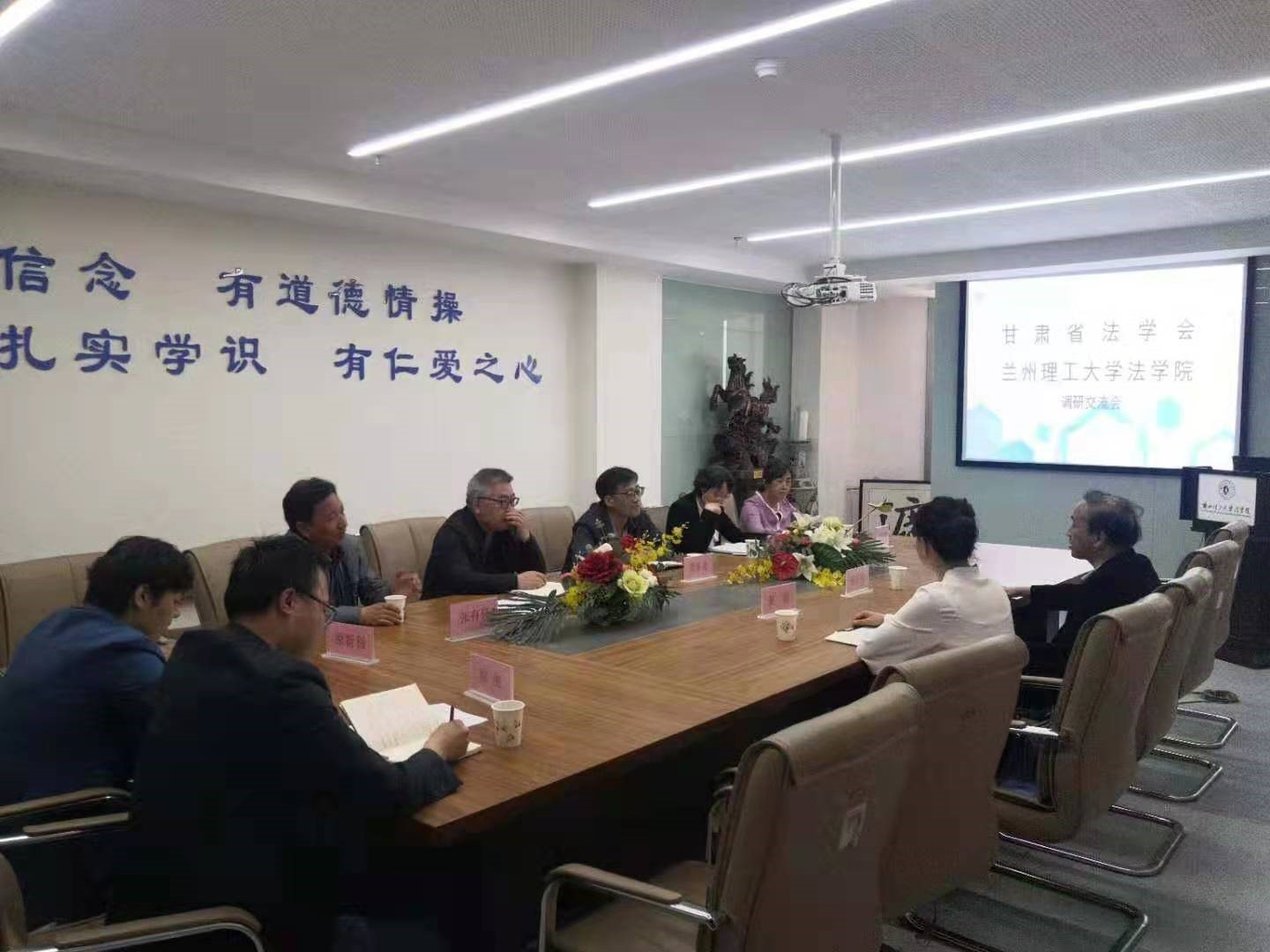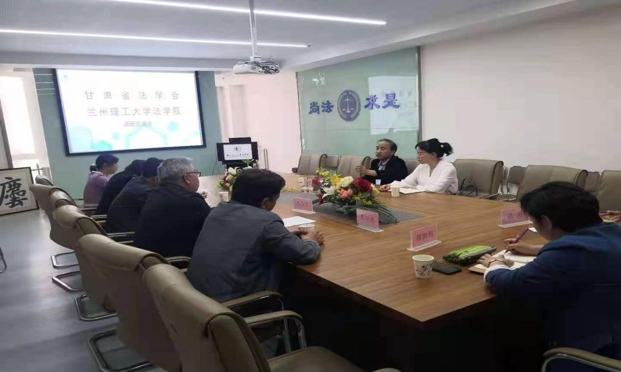 2021年5月13日,甘肃省法学会秘书长曹军利、研究部主任姜聪到法学院进行工作调研,法学院贾小龙院长、白小平副院长、法学教育中心主任袁峥嵘、法律硕士教育中心原新利知识产权系主任乔煜、以及张有亮教授和欧俊博士参加座谈。