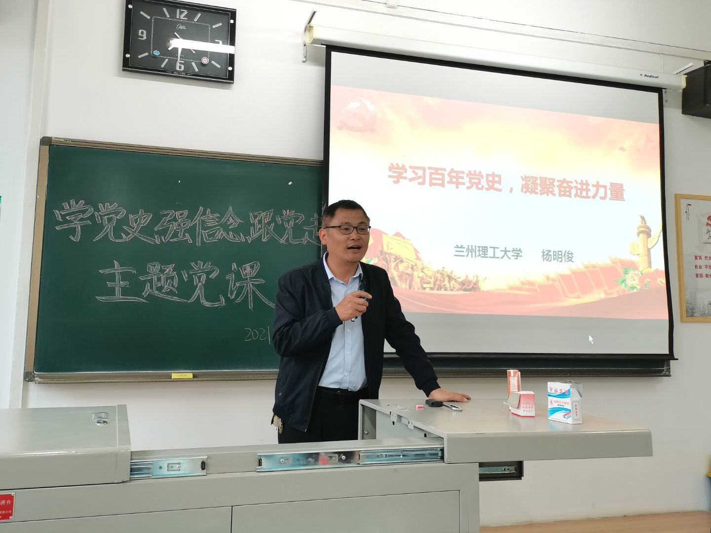 5月20日晚上,为庆祝中国共产党建党100周年,进一步丰富学生的校园文化生活,20级生物工程一班在西教抒望楼教室举行了“学党史、强信念、跟党走”主题党课活动,主题党课由生命学院副院长杨明俊主讲。20级生物工程一班班主任唐丹老师及20级生物工程一班全体学生参加了此次活动。