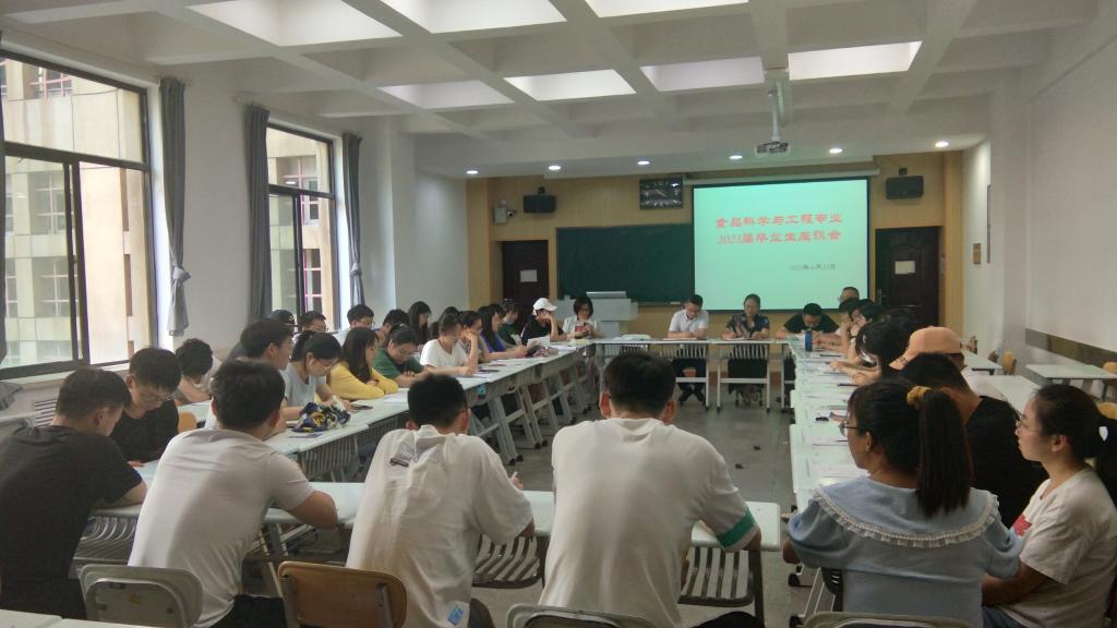 2021年6月25日,兰州理工大学生命科学与工程学院食品科学与工程专业在兰工坪校区1号南楼305教室召开2021届毕业生座谈会。生命科学与工程学院副院长任海伟、食品科学与工程专业教工支部书记、系主任王雅老师、赵萍教授、张百刚老师、冯再平老师、刘冰老师及17级食品科学与工程专业全体同学参加了会议。