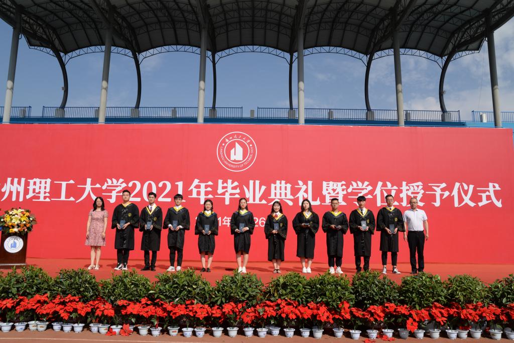 毕业典礼在国歌声中拉开帷幕。学院副院长李二超教授宣读《兰州理工大学2021年春季学期关于准予王晟等1545名研究生毕业的决定》;副院长王志文教授宣读兰州理工大学《关于准予2021届5436名本科生毕业的决定》;学院副院长包广清教授宣读了《关于表彰2021年考研先进个人的决定》和《关于在毕业生中确定班级校友联络员的决定》;学院党委书记王玲宣读了《关于表彰2021届优秀毕业生的决定》。随后,与会领导向优秀毕业生代表、考研先进个人代表和校友联络员颁发了荣誉证书。院领导向2021届毕业生代表赠送了毕业礼物。