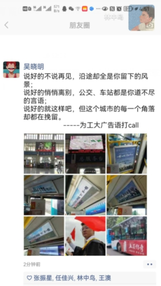 为欢送2021届毕业生,兰州理工大学团委、学生会通过在学校周边公交车上投放毕业生祝福语广告,在汽车站电子屏、校园广播站等平台循环播放欢送毕业生视频,为毕业生送上祝福,祝愿2021届毕业生一帆风顺,前程似锦。