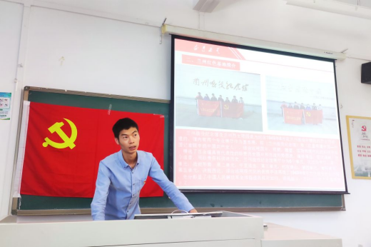 支部书记董季澄从兰州简介、兰州红色基地简介、兰州红色基地参观感悟、红色文化对大学生的教育意义以及基于兰州红色基地的大学生爱国情结培养措施五个方面展开讲述。重点讲述了他在兰州红色基地的参观感悟,让大家深刻认识到红色政权来之不易、新中国来之不易、中国特色社会主义来之不易。他强调红色文化对大学生的教育意义重大,红色文化资源不仅是办好思想政治理论课的重要素材和有力支撑,而且是开展爱国主义教育的生动载体,更是开展理想信念教育的生动教材。要充分利用网络媒体加强兰州红色文化的传播和影响,制定基于兰州红色资源的“三会一课”制度,也可以利用大学生社团制作兰州红色文创作品等,培养大学生爱国情结。希望大家能够不忘初心,砥砺奋进,在庆祝建党一百周年之际,利用好兰州本土的红色资源,传承红色基因,以实际行动履职尽责,在顽强拼搏中学思践悟,争做时代担当新人。