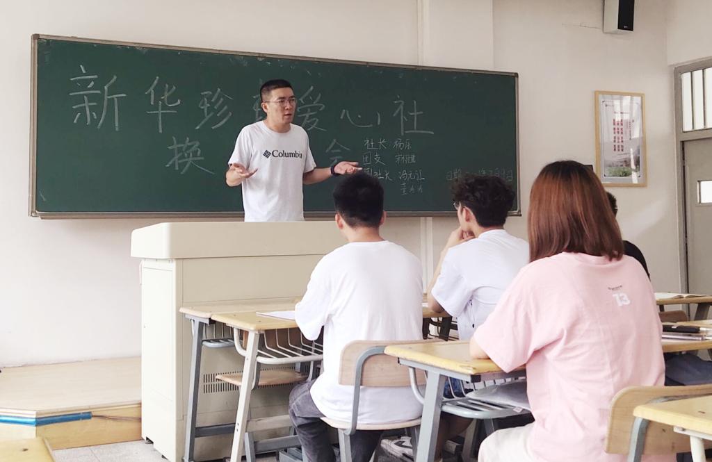 2021年7月9日中午,新华珍珠爱心社在彭家坪校区一号楼202教室举行换届选举大会,经济管理学院马少鹏老师、爱心社社长王如意、社团部门代表等参加了会议。