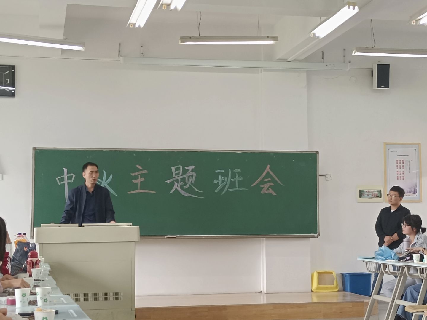 陈永泰代表学院对新生的到来表示欢迎并给新生带来中秋祝福,希望新生们要好好珍惜大学生活。李宏斌主持班会。首先,副班主任演唱了歌曲《你是人间四月天》,对新同学的到来表示热烈欢迎。杨举德同学自作诗歌抒写欢欣,其次更有动感的舞蹈、动听的歌声、紧张激烈的游戏等,使得现场气氛轻松欢畅,其乐融融。最后,班会在大家的阵阵欢笑中圆满结束。