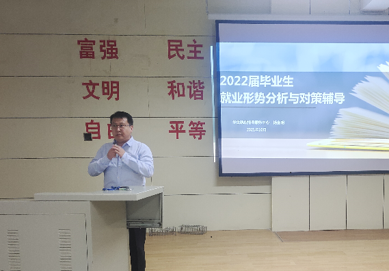 张飞龙对2021届学院各专业毕业生就业情况进行说明,并对2022届毕业生进行就业动员。(撰稿:张百乐;终审:任鹏)