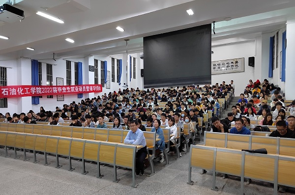 为深入贯彻落实党中央“稳就业”“保就业”决策部署,让毕业生认清就业形势,把握就业机会,实现毕业生更高质量和更充分就业,10月8日晚,石油化工学院在彭家坪校区举办2022届毕业生就业动员暨专题辅导大会。学生就业指导服务中心主任杨金明作专题讲座,石油化工学院党委副书记张飞龙主持会议,辅导员及2022届毕业生参加会议。