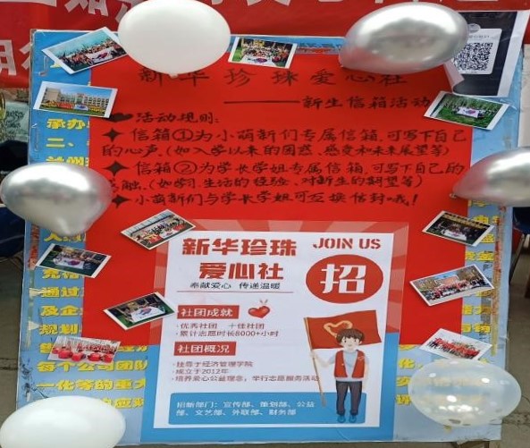 为给兰州理工大学21届新生提供一个锻炼自我、提升自我的平台,同时为社团引入充足的新鲜血液,保证工作的连续性,新华珍珠爱心社于10月9日在彭家坪校区红柳广场举行了2021年招新活动并吸引众多新生参与。