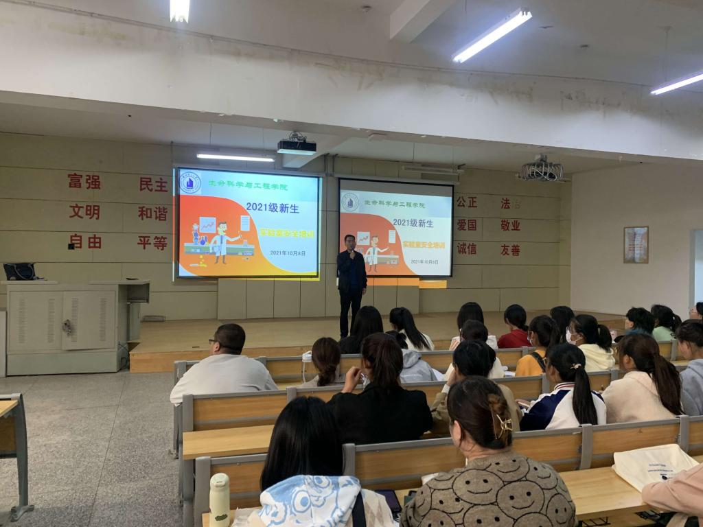 2021年10月8日,为进一步加强我院实验室安全管理工作,更好地保护实验室工作人员和社会公众的健康,兰州理工大学生命科学与工程学院在彭家坪校区2-108教室邀请实验室张丙云副教授为2021级本科及研究生新生开展实验室安全教育。