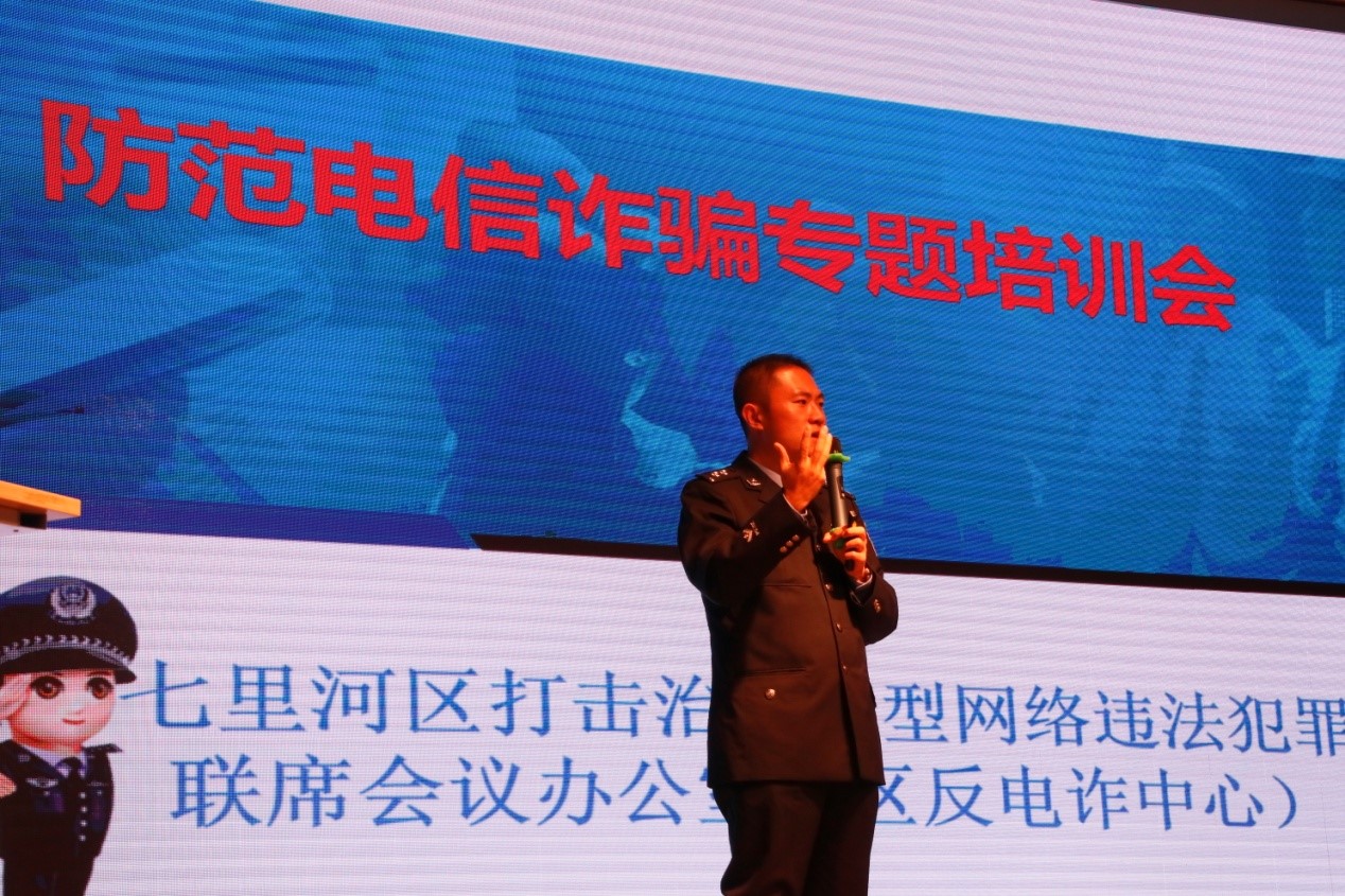 为贯彻落实习近平总书记关于打击电信网络诈骗犯罪工作指示精神,响应“网络安全宣传周”工作要求,材料科学与工程学院于10月15日晚在兰工坪校区大学生活动中心邀请兰州市七里河公安分局反电信网络诈骗大队朱毅斌警官为学院2021级本科新生详细讲解如何预防电信网络诈骗。参加此次大会的有2021级本科新生辅导员王玉兵、王玮及2021级全体本科新生。