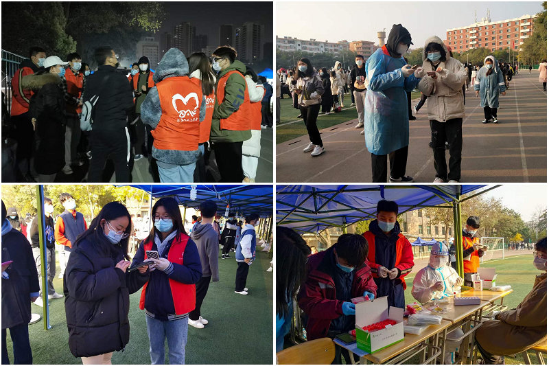 此次核酸检测过程中,设计学院青年学生志愿者配合甘肃省第一人民医院的医护人员,完成本院1427名学子和百余名教职工及家属的核酸检测工作,随后又对本次核酸检测的所有试管样品进行了检查和装箱。整个志愿服务时长达10余小时。