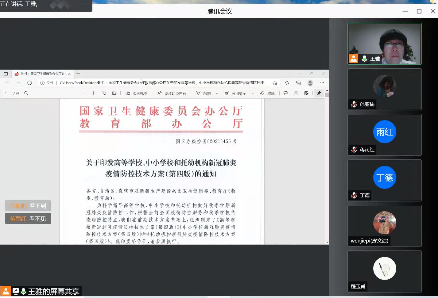 2018级食品科学与工程一班在10月29日晚上22:00于腾讯会议召开线上主题班会,由班主任带领同学们认真学习了国家卫生健康委员会办公厅教育部办公厅《关于印发高等学校、中小学校和托幼机构新冠肺炎疫情防控技术方案(第四版)的通知》和兰州理工大学《关于进一步落实学生疫情防控相关事项的通知》,强调严格执行国家和学校的相关疫情防控政策和要求,人人严格进行疫情防控。注重个人卫生,养成勤洗手、常通风、少聚集等良好习惯,提高防疫意识,保护好自己和他人的安全,党员同志和班干部充分发挥模范带头作用,积极配合学校防疫工作,按时核查健康码,及时报备相关情况。