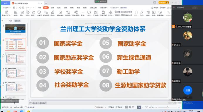 为了帮助2021级新生更好地融入大学校园生活,引导新生树立良好的纪律意识,规范自己的行为举止,提高自我约束能力,维护校园正常教育教学秩序和生活秩序。11月10日,计通学院辅导员刘珊珊老师在腾讯会议上对2021级本科新生进行了校纪校规入学教育,列举实例对高等学校学生行为准则、国家教育考试违规处理办法、学生宿舍管理规定和学生违纪处分规定进行了详细讲解,为同学们阐明大学生之“可为”与“不可为”。同时,为了落实和积极宣传党和国家对高校的相关资助政策,使新生对国家和学校的奖助政策有一个全面的了解,提升资助育人工作水平,刘珊珊老师围绕奖助贷政策,对国家资助政策的要求以及我校相关奖项设置、奖励金额、评定比例、评定条件等进行了详细讲解。讲解过程中,老师与同学们不时地进行线上互动问答,解答学生关于校纪校规和奖助学金的各类问题。