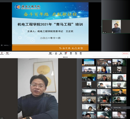 为进一步学习贯彻习近平总书记关于青年工作的重要思想,加强团学组织工作人员的责任意识,提升广大青年的思想政治素养,引导青年坚定理想信念,机电工程学院团委于近期组织开展“青马工程”暨团学干部素质能力提升专题培训。11月12日晚,学院党委书记王正民以《共产党人的信仰与初心》为题,进行了首场报告,拉开了培训的序幕。本次培训,学院200余名“青马学员”参加。