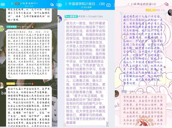 11月12日至15日,外国语学院24个团支部积极开展学习党的十九届六中全会精神主题团日活动。