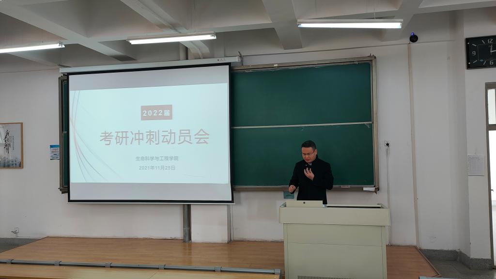 为鼓舞考研学子士气,再创考研佳绩,生命科学与工程学院11月25日下午召开考研冲刺动员会。院长伍国强、院党委副书记武军莉,辅导员唐爱丽、毛维兴以及2022届全体考研学生参加会议。
