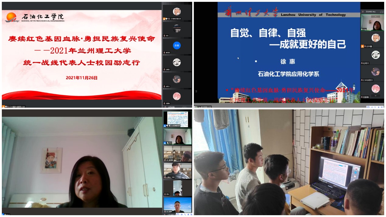 2021年11月26日,石油化工学院党委组织统一战线代表人士校园励志行线上报告会。党外人士、博士生导师、学校“师德标兵”获得者徐惠教授担任主讲,石油化工学院2021级全体新生参加。
