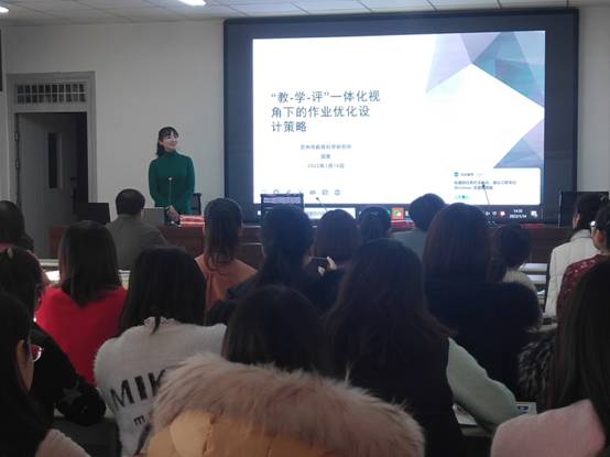 1月14日下午,兰州理工大学附属中学教育集团开展了“双减”背景下作业设计交流研讨活动,特邀兰州市教科所教研室副主任田黎来我校作专题讲座。