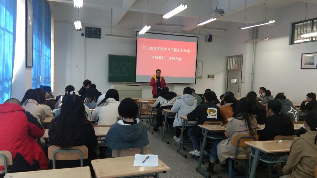 为全力推进2022届毕业生就业、考研复试和调剂工作,2022年3月1日18级食品科学与工程专业在彭家坪校区1-103召开就业、考研复试及调剂主题班会,会议由专业系主任兼班主任王老师主持,食品科学与工程专业全体教师及全体毕业生参加了会议。首先王雅老师对全班的就业现状、考研成绩进行总体分析,对同学们之前一段时间的努力表示肯定;同时专业老师就研究生复试、调剂等方面政策进行了解读,回答了同学们较为关注的相关问题,详细介绍了复试前如何获取目标院校信息、了解面试流程、准备复试材料以及如何联系导师等多方面内容,另外各位老师还建议同学们抓住重要时间节点,认真准备复试,根据自身的实际条件去选择合适的院校,关注调剂学校信息,主动联系学校老师。