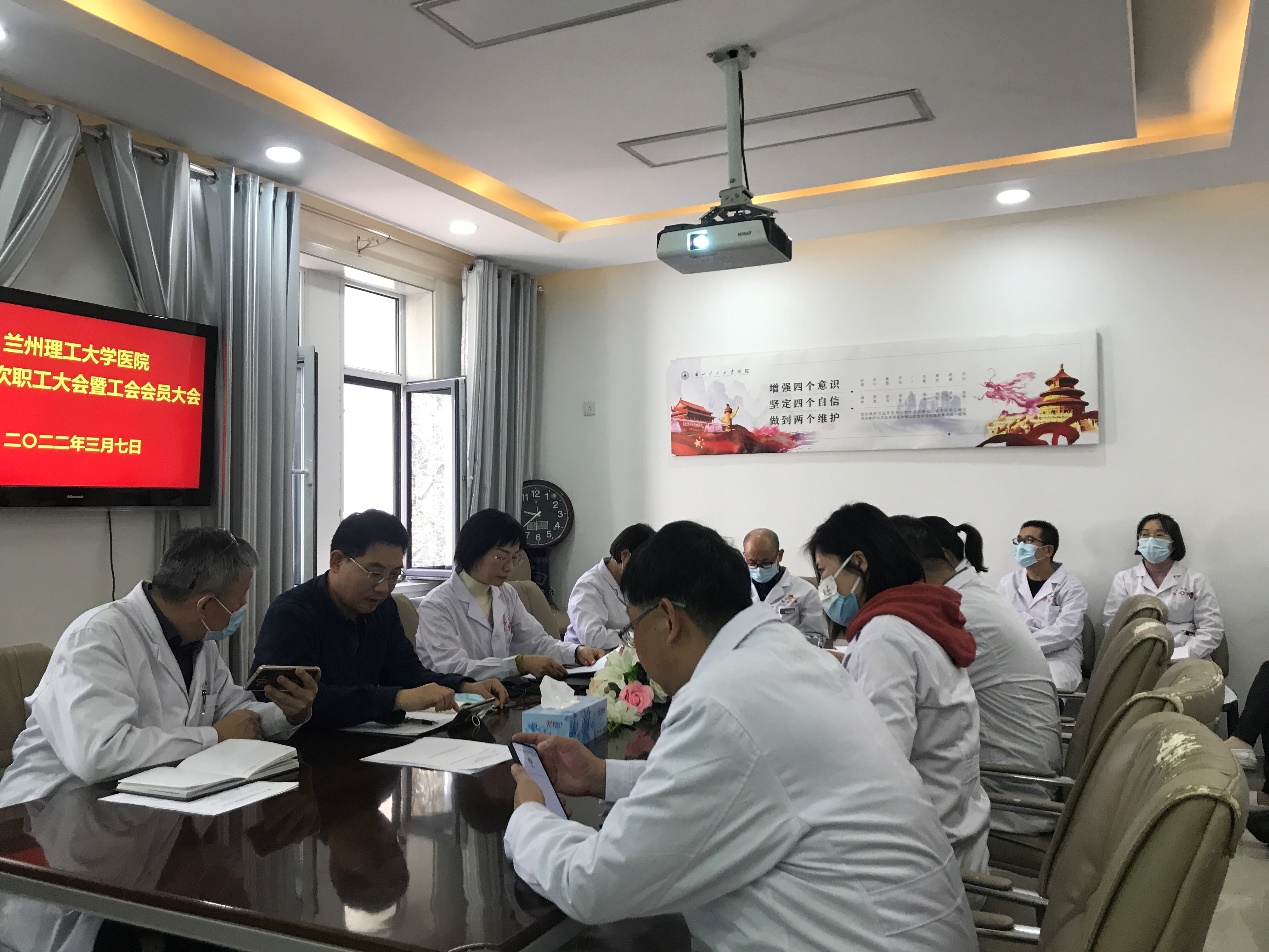 2022年3月7日下午,校医院三届二次职工大会暨工会会员大会在校医院会议室举行。结合疫情防控的要求,全院职工通过线下线上结合的方式参加了会议,会议由校医院直属党支部张思成书记主持。