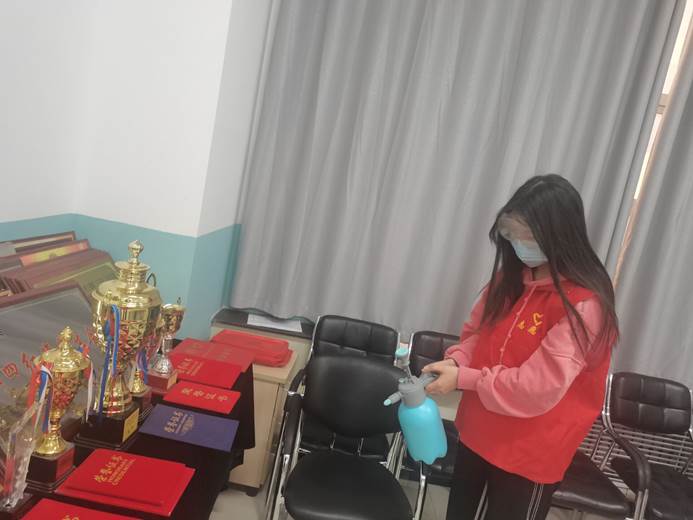 志愿者们帮助师生进行办公室及学生宿舍卫生消杀,清扫、更换学院附近文化展示栏,宣传展示雷锋事迹以及倡导同学们在生活中树立环保意识,进行生活垃圾分类等活动来弘扬雷锋精神。