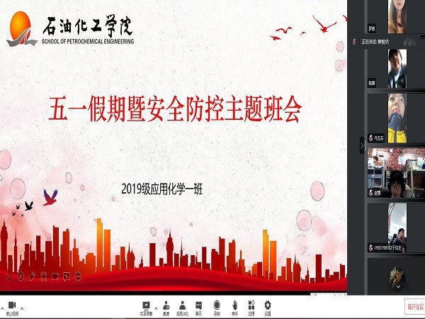 2022年4月26-27日,石油化工学院组织各班主任以“五一”期间疫情防控及安全教育管理为主题,以线上线下相结合的方式召开各班级班会。