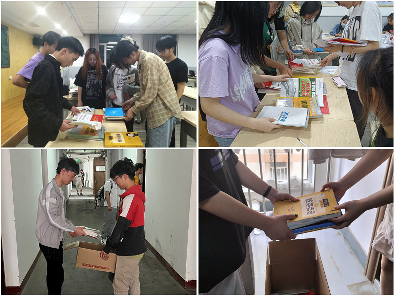 经过前期的积极筹备,学院安排学生干部去宿舍收取毕业生捐赠的图书,涵盖专业书籍、教材、考试辅导等书籍类别,将其归类整理后,发放至对应专业班级,供低年级同学循环使用。