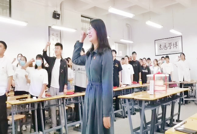 就业经验分享结束,金融学本科生党支部闫向阳老师和工商管理本科生党支部张凡老师为全体参会党员颁发政治生日贺卡,并同切“政治生日蛋糕”。随后,由金融学本科生党支部副书记司玉蓉带领全体党员重温入党誓词,回顾入党初心,坚定理想信念,勇担历史使命。