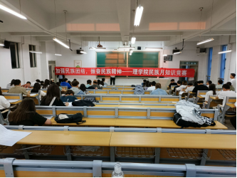为迎接建团一百年,加强同学们对于党的民族理论、民族政策的学习、宣传、教育,进一步学习了解民族团结相关知识,让广大青年深刻认识到抓好民族团结,树立民族团结工作重要性的全面认识。理学院于2022年5月31日在彭家坪校区蔚云楼306室,组织召开“加强民族团结,振奋民族精神”民族知识竞赛。理学院2021级预科一班、预科二班参与此次活动。