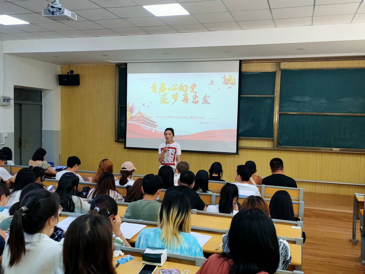 为提升毕业生党员的党性修养,坚定毕业生党员的信仰与初心,6月11日下午,设计艺术学院在琢玉楼122教室举办“青春心向党 逐梦再出发”毕业生党员主题教育活动。113位毕业生党员和工业设计本科生党支部书记周佩老师、部分低年级党员代表参加了本次活动。