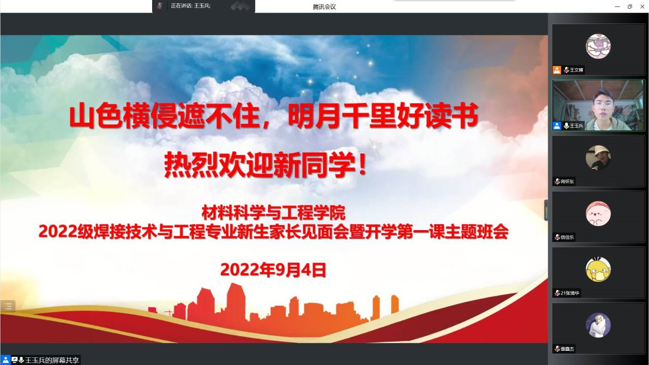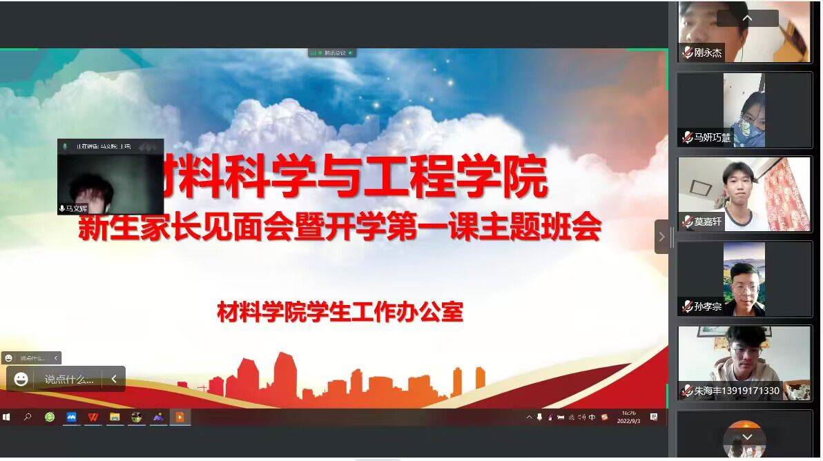 为落实学校疫情防控统一安排部署及线上教学工作安排,全力筑牢疫情防控防线,教育引导新生尽快适应大学生活、进入学习状态,切实保障新生生活学习顺利开展,材料学院于9月3日-4日组织召开各新生班级线上家长见面会暨开学第一课主题班会。