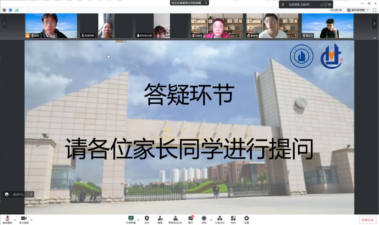 线上家长见面会暨开学第一课主题班会获得家长及学生的一致好评,建立新生家长微信群让学院夯实良好家校沟通的基础,主题班会最后专门设置环节为新生与家长解答相关问题,班主任耐心细致的解答让家长及学生感受到学院的关怀,也为未来开展新生教育引导工作奠定良好的基础。待到秋高气爽、疫情退散,材料学院热烈欢迎22级材料新生的到来。