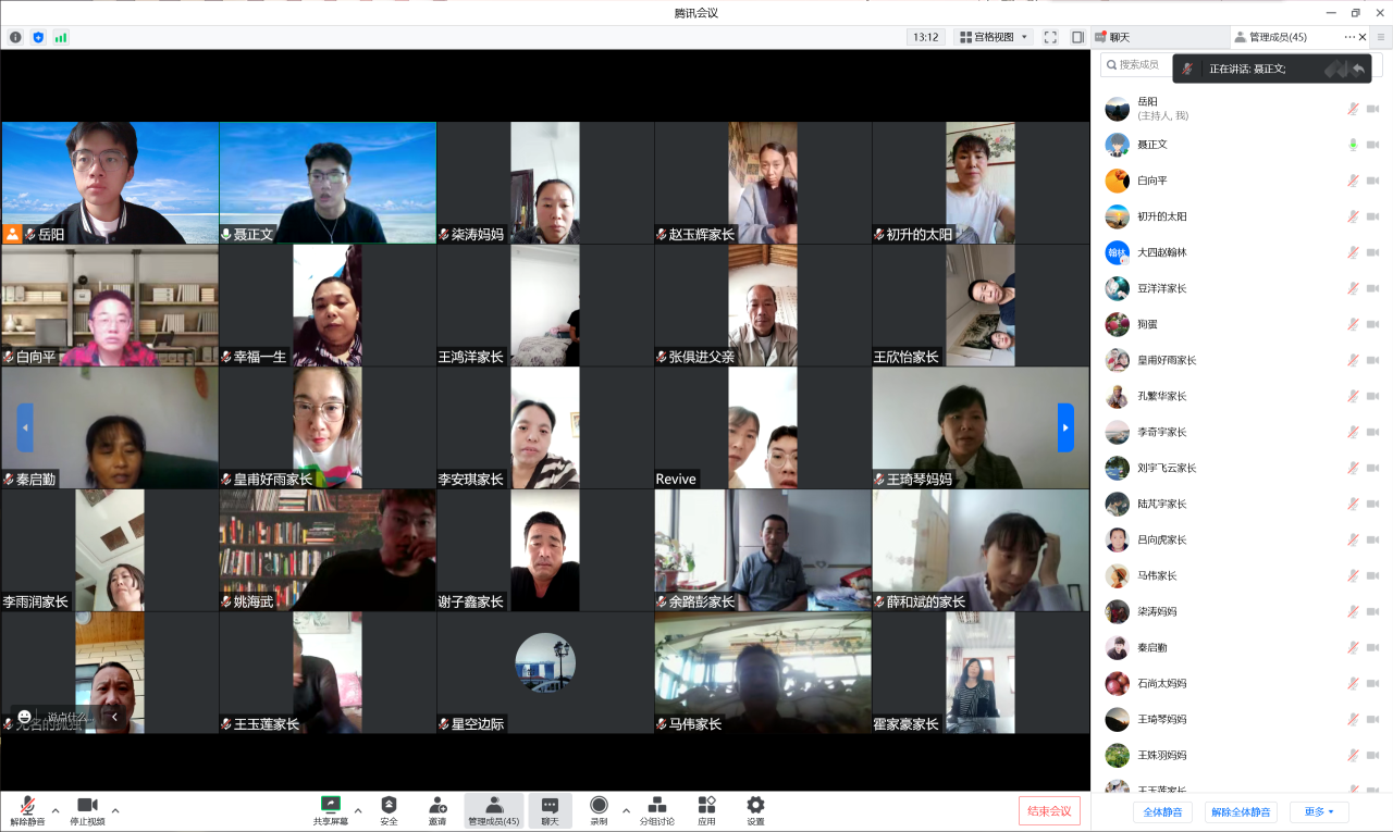 会上,各新生班主任与新生及家长进行云端相见,按照学院拟定的内容提纲,为新生及家长讲清学校相关政策及管理规定、答疑解惑,在开学之初充分做好家校联络相关工作。通过学院宣传片、专业师资简介、近年就业考研数据等内容让学生及家长对学院有更直观的了解。学院统一组织各位经验丰富的辅导员老师担任新生班主任,各位老师为家长及学生细心讲解学校学籍管理、学生管理、奖助补贷等相关政策规定,为同学们讲明大学学习生活的底线与高线,通过学生成长规律、学校教育目标、个人工作经验等要点为新生做好大学学习生活规划,梳理新生短期重点任务,教育引导每位同学树立远大目标,争先创优、开拓进取。通过开学第一课入学教育,积极引导新生积极配合学校筑牢织密疫情防线,每天认真、如实完成大学小帮手的健康打卡任务;自觉自律参与线上学习,积极乐观面对大学生涯,尽快适应并顺利完成中学向大学的过渡。