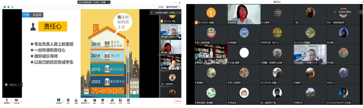 张玺君副院长结合自身班主任经历,主要从学习引导、班风建设、班级凝聚力、学科竞赛组织等几个方面分享了他当班主任的心得经验。他指出,学院各个专业处于热门是社会目前各行各业紧缺的专业,作为班主任要做好引领,上好大学第一课,给学生系好大学的第一粒扣子,促进学生成长成才。