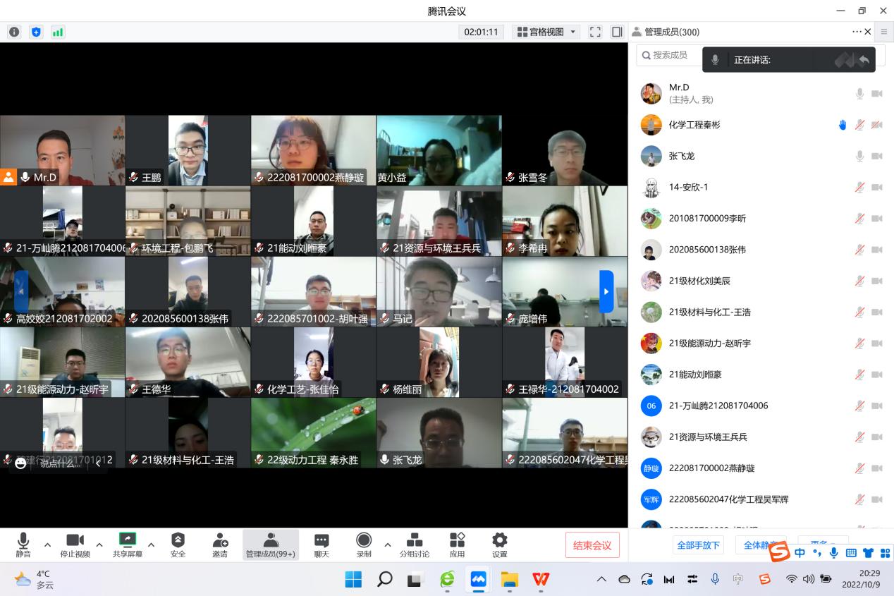 为进一步维护校园安全稳定,创造安全文明的校园环境,2022年10月9日,石油化工学院以线上方式召开了秋季学期研究生安全教育大会。学院党委副书记张飞龙、研究生辅导员及全体硕博研究生参加会议。