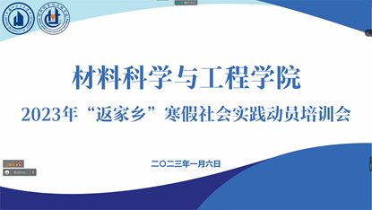 为深入学习宣传贯彻党的二十大精神,进一步带领广大青年学子上好与现实相结合的“大思政课”,切身感受党的领导下过去五年和新时代十年取得宏伟成就,在服务家乡、服务人民中学思践悟习近平新时代中国特色社会主义思想和党的二十大精神的世界观、方法论,积极引导广大青年学生通过社会实践增长才干、增加阅历、磨练意志,培养社会责任感、创新精神和实践能力,用实践感受社会、用实践关爱社会、用实践锻炼自我。1月6日,材料学院团委通过腾讯会议召开2023年寒假“返家乡”社会实践动员培训会,各年级团支书以及团委、学生会负责人参加会议,会议由学院青年素质拓展部负责人马耀琦主持。