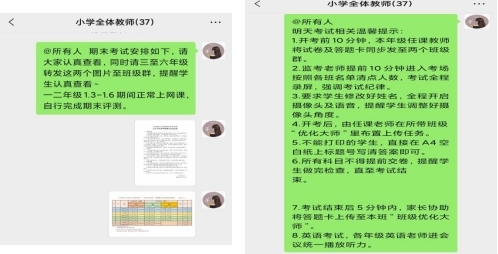 我校领导班子高度重视本次线上测试,及时召开校务会会部署工作。教导处对本次测试进行了精心安排,制订严密的线上测试方案,召开体教师会明确测试要求,对测试形式、测试流程及注意事项做了充分部署,落实好教师及学生任务安排,各班主任要利用班级群提前告知学生和家长本次测试的注意事项和其重要性。在每场测试前十分钟班主任在班级群里通知学生及时就位,任课教师发布各科试卷及答题卡,及时说明测试注意事项,缓解考生的焦虑情绪,努力让考生安心、家长放心。