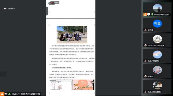 学院2022年暑期“三下乡”社会优秀团队负责人分享了团队实践活动的组织过程、宣传成果及结项报告等内容,并对同学们提出的相关问题进行了答疑。