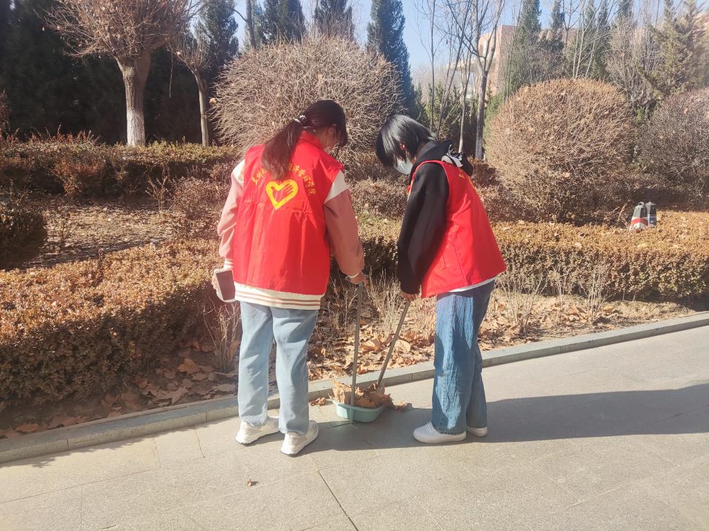 3月5日当天,团委学生会组织志愿者进行系列志愿活动,志愿者们分头行动,清扫校园、回收垃圾、整理单车。志愿者们不惧严寒,身上的一抹红色构成了校园里一道独特的风景。