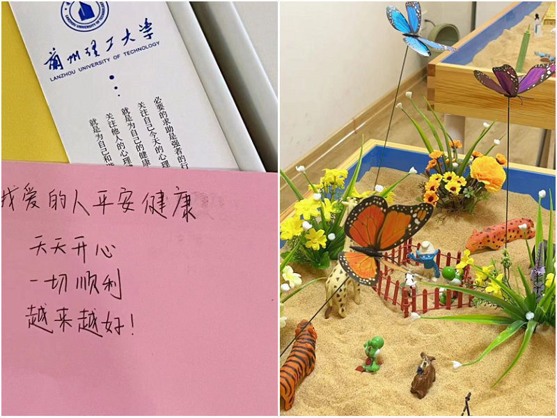 本次活动一共为四个环节,首先各心理委员以及宿舍心理联络员在校心理中心的心理咨询室里进行了一对一的沟通与交流,对自身心理健康方面进行了全面检查与了解。随后开展了一系列的团体活动,例如玩沙盘、心理小游戏以及心理互动等项目,在娱乐的过程中,科普了心理健康知识,释放了自身的心理压力。在参观的最后,活动成员将自己的心愿写下并粘贴在了墙上,通过此种方式来激励自己,以积极的心态面对学习生活。