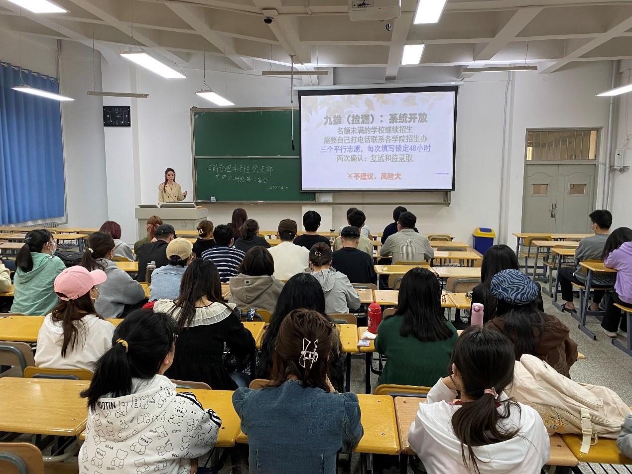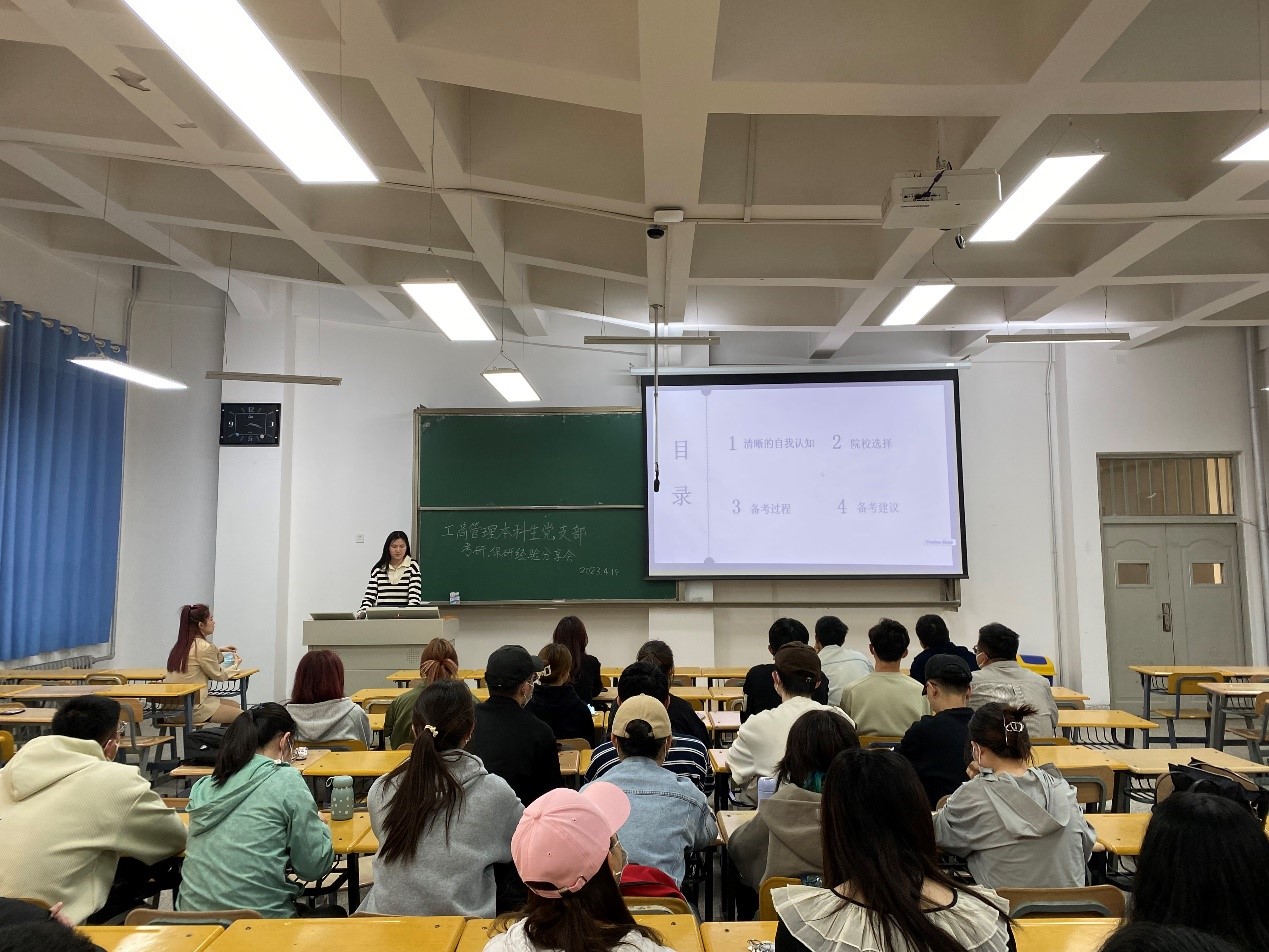 为深入学习贯彻习近平新时代中国特色社会主义思想主题教育精神,更好推进工商管理专业学生就业学业发展,搭建一个同学之间相互促进的交流平台,2023年4月19日下午,针对当前20级工商管理专业学生对未来迷茫的情况,经济管理学院工商管理本科生党支部特开展“学长学姐有话说”朋辈引领系列活动首场“考研、保研经验交流会”,本次活动由工商管理本科生党支部书记张凡主持,支部党员赵雅云和王梦春两位同志为20级同学分享保研与考研备考经验。
