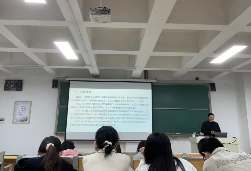 马延柏博士的汇报题目是“数字化转型对企业碳绩效的影响”。他首先向大家介绍数字化转型与企业碳排放量之间的关系,然后提出数字化转型作为一种新的商业模式,能否推动企业低碳转型值得探讨。通过建立了一个面板回归模型,考察了2009-2019年中国企业数字化转型对其碳绩效的影响,得到研究结果。研究结果表明:(1)数字化转型显著提高了企业的低碳绩效。(2)数字化转型在提高能源密集型企业的低碳绩效方面发挥着更大的作用。(3)非效率投资和政府补贴与企业数字化转型存在替代关系,这将削弱上述积极效应。(4)数字化转型对企业碳绩效具有正向门槛效应。当数字化程度和能源消耗超过门槛值时,数字化转型对企业碳绩效的贡献显著增加。这些发现对企业、管理者和政府机构发展低碳和数字经济具有实际意义。